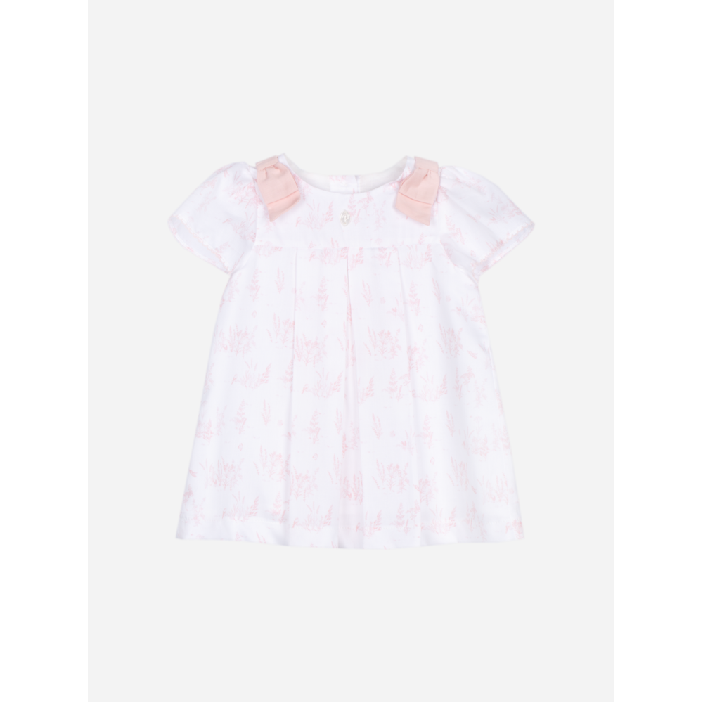 Patachou Roze jurk met grote print en schouderstrikken