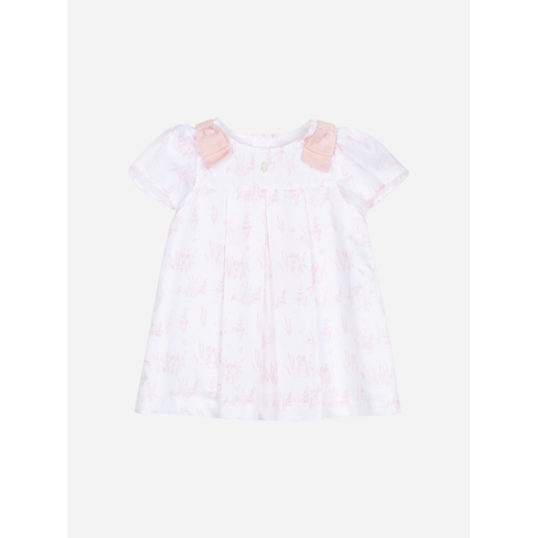 Patachou Roze jurk met grote print en schouderstrikken
